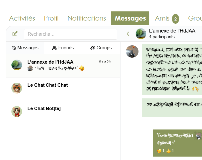 Les deux ChatBots sont disponibles ici au même niveau que les autres conversations. Sélectionnez le ChatBot de votre choix et commencez votre discussion !